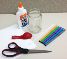 1. With an adult’s help, cut the neck off of the balloon and stretch the remaining part tightly over the jar’s mouth.