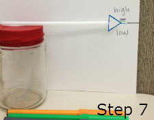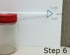6. Set the cardstock against a wall* and set your barometer in front of it. Mark a line level with where the straw is. Write “high” above the line and “low” below the line.