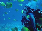 There is only one way to explore the very bottom of the sea – in an underwater craft called a submersible. Humans can dive down to depths of 130 feet if they use SCUBA equipment (self-contained underwater breathing apparatus). With extra special equipment and training they can go down to 300 feet. But the average depth of the ocean floor is around 12,000 feet and in some places much deeper!